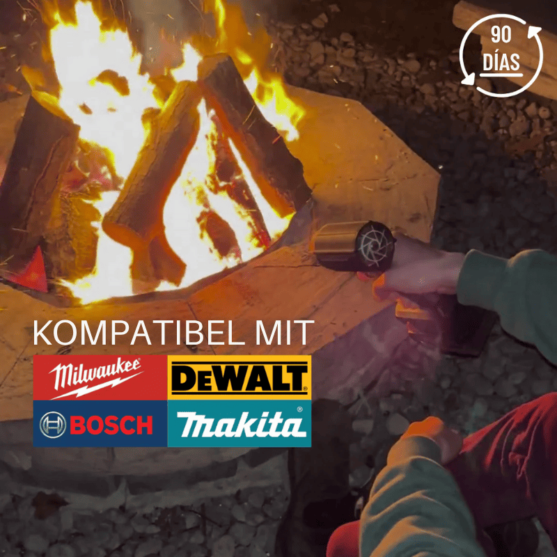 🔋 Kabellos und wiederaufladbar — kompatibel mit Makita-, DeWalt-, Bosch- und Milwaukee-Akkus.