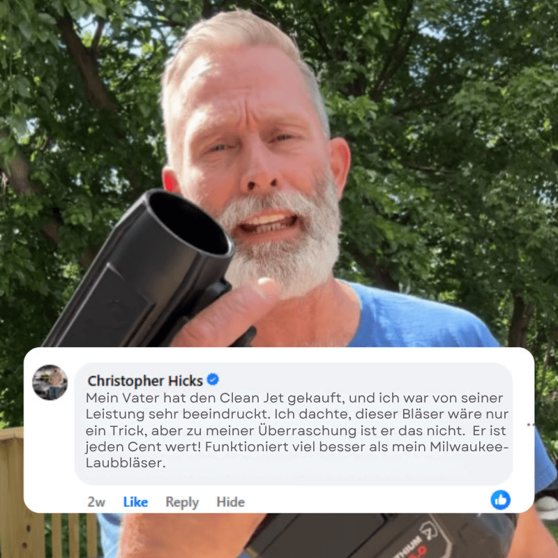Bist du es leid, zu wischen, Blätter zu fegen und zu versuchen, schwer erreichbare Ecken zu säubern? Clean Jet™ ist da, um Schmutz in Sekundenschnelle zu beseitigen.