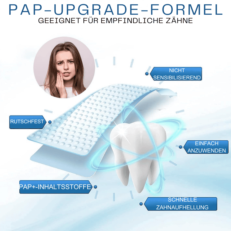 🦷 Schnelle Ergebnisse: Bis zu 3 Farbstufen heller schon nach der ersten Anwendung. 🦷 Sichere PAP+ Formel: Ohne Peroxid, verursacht keine Empfindlichkeit. 🦷 Zahnschmelzschutz: Hellt auf, ohne die Zahnstruktur zu schädigen. 🦷 Bekämpft hartnäckige Flecken: Entfernt selbst jahrealte Verfärbungen. 🦷 Maximale Praktikabilität: Leicht, tragbar und überall einfach anzuwenden. 🦷 Remineralisierende Wirkung: Stärkt die Zähne während des Aufhellens.